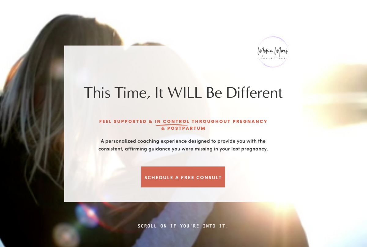 Modern Moms is a health and wellness blog and services provider focusing solely on pregnancy and postpartum. Together we collaborated for a full website and blog design overhaul. We created this beautiful, colorful design and crafted SEO-optimized messaging that has helped to double website traffic and increase coaching income.
